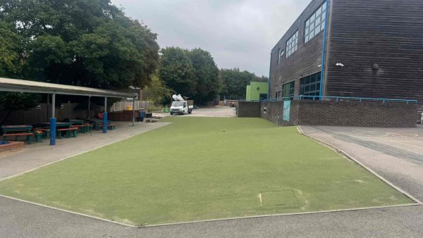 After more than a decade of daily use, Devonshire Primary School’s original Play Care Artificial Grass surface needed a replacement. Over three days, our team removed the old turf, installed new concrete edging, and laid 380m² of fresh Play Care grass, leaving the school with a cleaner, safer, and more usable play area.
