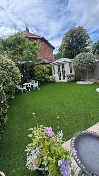 At a property in Sale, our team carried out a full garden transformation, replacing tired natural grass with Lush Artificial Grass and installing a decorative block circle feature. With no rear access, all materials had to be brought carefully through the house — but in just two days, the garden was given a new lease of life.